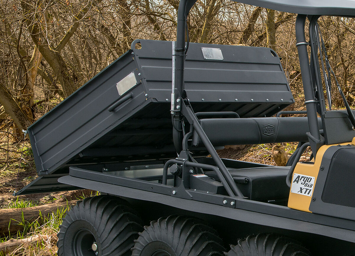 The 2022 model will come with a new ITC clutch package that improves torque, a new digital gauge display with fuel gauge, and aggressive XT119 tires as well as hood fans, dual projector-beam headlights, and an electric steel dump box as standard equipment. Conquest XTX is engineered for demanding commercial use, offering large payload capacity, tubular steel frame, sealed axles, and comfort for the occupants. This vehicle is ideal for transporting equipment through rough terrain due to its low operational weight and efficient Admiral steering transmission. It is the best-in-class vehicle for jobs that take you off the beaten path thanks to its 18" rubber or Adair Mud-Pro tracks. Available colors are industrial yellow or tundra green.