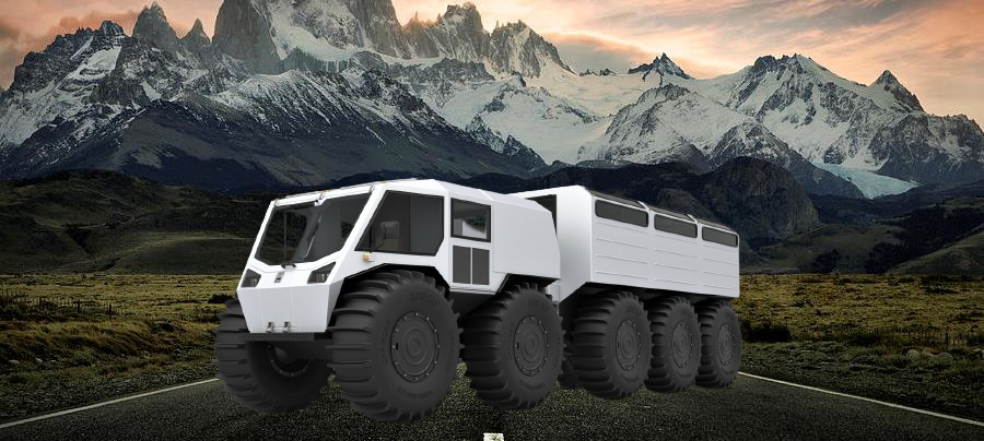 Overland work vehicles like this one are able to transport up to 3,400 kg of cargo or 22 people over nearly any terrain.