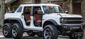 As part of Apocalypse Manufacturing's project, the team converted a new Ford Bronco into a six-wheel-drive vehicle. Dark Horse is the name given to this stallion by the company as it has a mean streak.